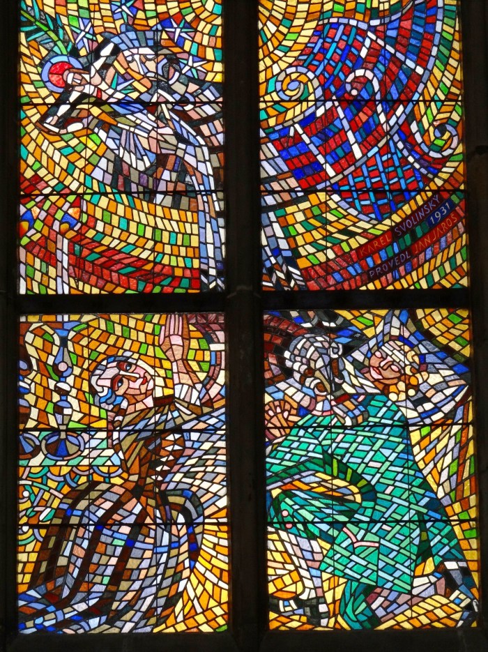 Otra extraordinaria vidriera fue diseñada por Karel Svolinsky, ejecutado por Jan Jares entre 1932 y 1933.