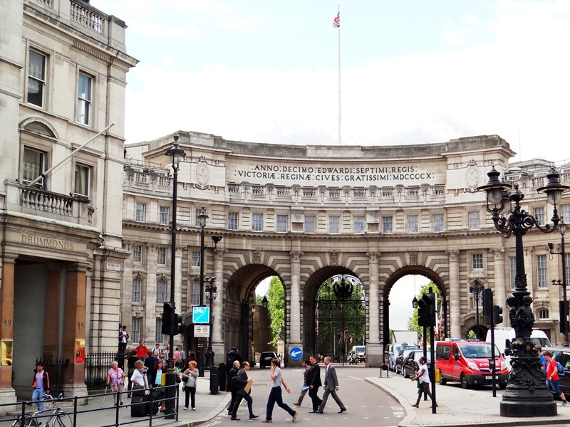 Tras ver el cambio de guardia, es obligado recorrer The Mall, una ancha avenida de bidireccional que une el Palacio de Buckingham con el Admiralty Arch, el Arco del Almirantazgo, construido en 1910, que además de tres enormes aberturas por la que pasan automóviles alberga amplias oficinas. Este triple arco sirve de acceso desde The Mall al corazón de Londres, Trafalgar Square. Antes de llegar al Arco, hay una escalera muy amplia, a mano izquierda, que conviene ascender. Allí se llega a la refinada calle Carlton, que corre paralela entre The Mall y Pall Mall, cuyos edificios son espléndidos.