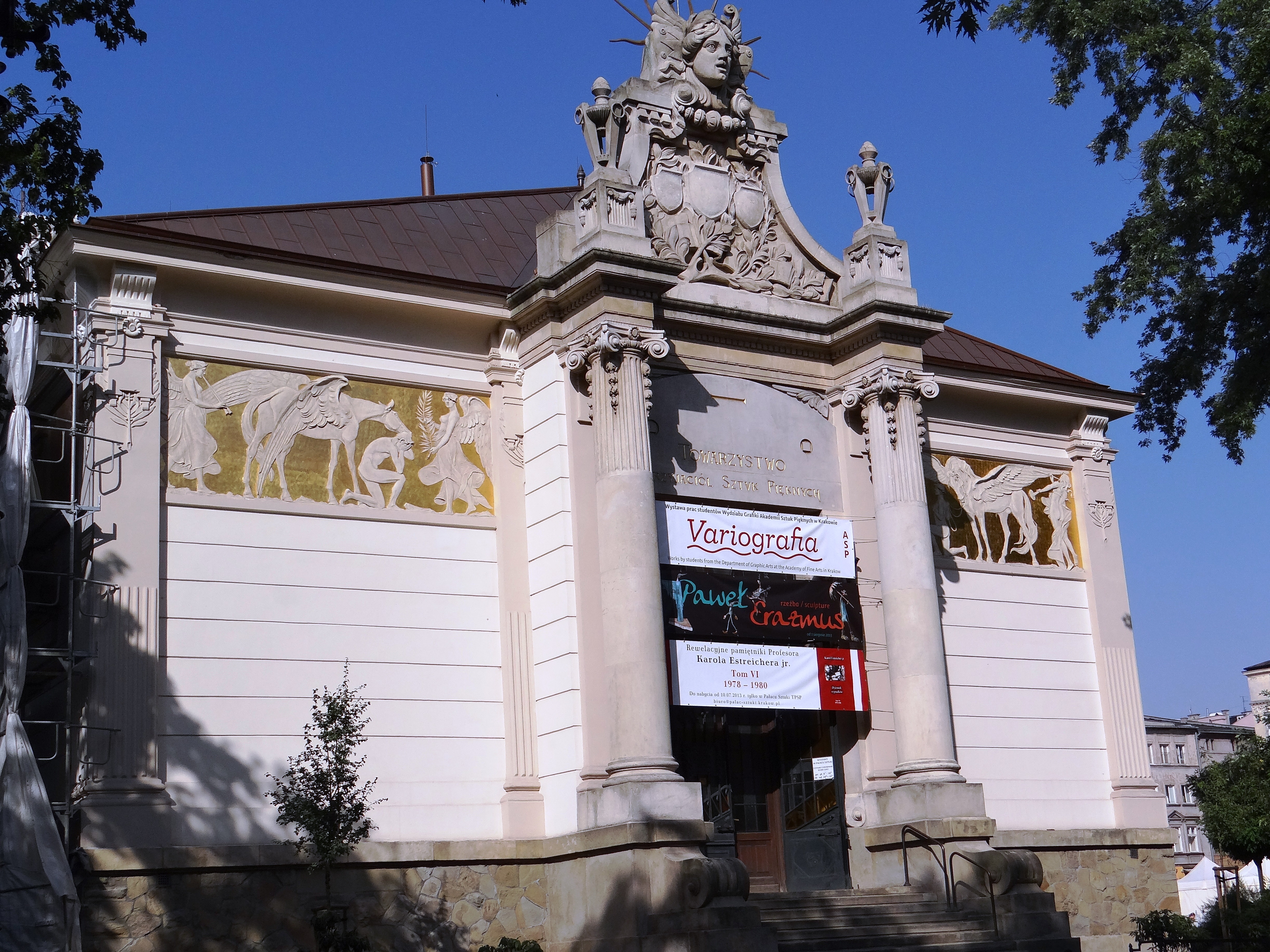 En realidad, este bajorrelieve forma parte de una de las es una de las joyas arquitectónicas de esta bellísima ciudad. El Palacio de las Artes de Cracovia, propiedad de la Sociedad de Amigos de Bellas Artes de Cracovia, se ubica en la Plac Szczepański, una espléndida plaza de piedra con una animada fuente de agua que en verano se puebla de niños.
