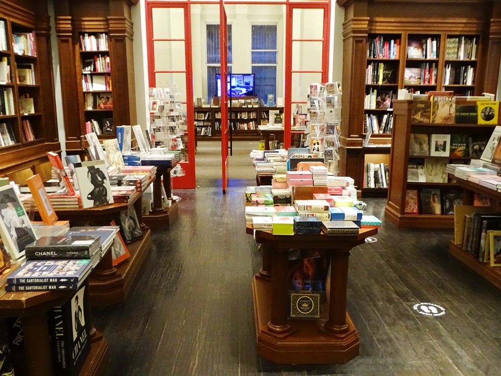 La librería se encuentra en esta icónica esquina desde 1957. Tiene pisos de madera, amplias escaleras y un ascensor interno. Las estanterías de la planta baja parecen infinitas, como si fueran parte de la borgeana Biblioteca de Babel. Puede admirarla desde espacios que funcionan como balcones.