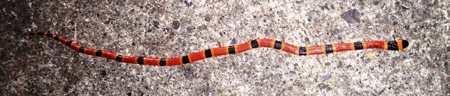 Finalmente hemos conocido a personas que confunden la pequeña e inofensiva Ninia sebae, conocida popularmente como coralillo por sus colores rojo y negro, con una coral de dos colores.
