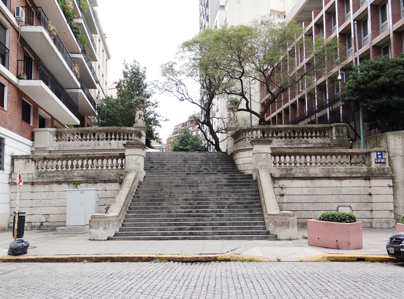 Llegamos así al final de la calle Guido, que es otra escalera que tiene sabor parisino. Vista desde arriba, comienza con una explanada de baldosa cuadriculada. A ambos lados se abren dos escaleras que descienden hacia su confluencia y en el centro una pequeña fuente y un monumento dedicado al médico argentino Antonio F. Piñero, realizado por el escultor argentino Eduardo Lagos.