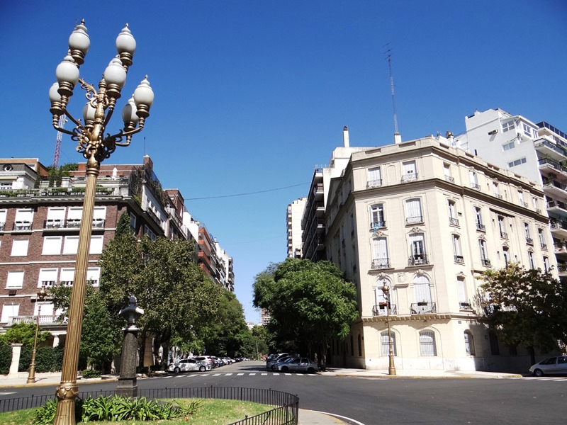 Avanzamos hasta la esquina y llegamos a un amplio espacio abierto y apacible, a pesar de ser la confluencia de múltiples esquinas. En su centro se ubica la plazoleta Gelly y Obes, emplazada sobre la avenida General Juan Gelly y Obes, que lleva este nombre desde 1915, en homenaje a quien fuera ministro de Guerra y Jefe del Estado Mayor durante la presidencia de Bartolomé Mitre y continuara sus funciones como general en jefe durante la presidencia de Domingo Faustino Sarmiento[7]. A la plazoleta desembocan no sólo la calle Guido y la avenida General Juan Gelly y Obes, sino también la calle Galileo y la calle Newton que en su corto trayecto bordea el edificio más importante de la Embajada del Reino Unido, que originalmente fuera el Palacio Madero Unzué, que perteneció a la familia homónima, construido entre 1914 y 1917 por los arquitectos ingleses Walter Basseth-Smith y Bertie Collcutt.