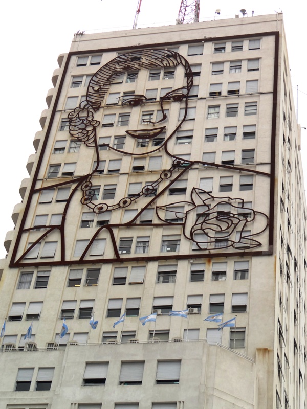 Considerados por algunos murales de acero y por otros gigantografías en el mismo material, dos enormes rostros de Evita se destacan sobre las caras del Edificio del MOP que miran a la calle Moreno y a la Avenida Belgrano.