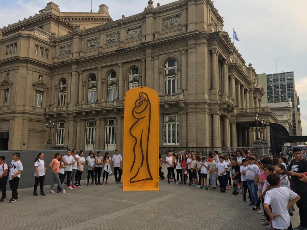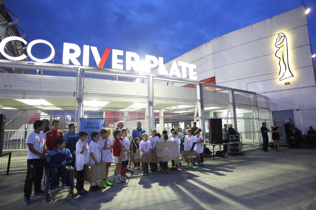 “El Abrazo” es un mensaje que puede ser llevado a todos los ámbitos, como el político, el religioso y el social. Mostramos, por ejemplo, su alcance en el fútbol, donde la obra de Marmo llega tanto a los barras de Boca y de River con un mensaje de no más violencia.