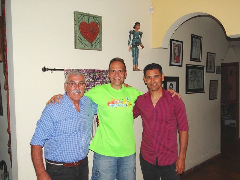 A la izquierda el técnico de fútbol Manuel Keosseian, en el centro el entrevistado y a la derecha Víctor Coello, ex arquero de la Selección Nacional de Honduras
