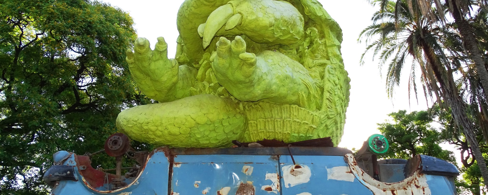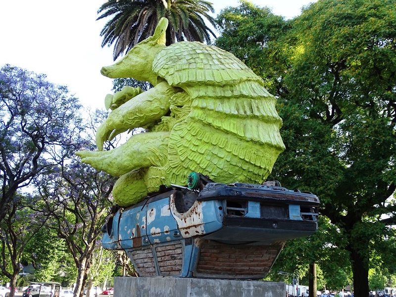 originalmente ubicada en la Plaza Intendente Seeber, y hoy dentro del ex Zoológico porteño, se encuentra un enorme mulita de un amarillo rutilante sobre un auto volcado cuyas ventanas están tapiadas con ladrillos. Esta curiosa obra de arte, creación de Carlos Huffman, fue presentada en abril de 2019 en ocasión la Semana del Arte de Buenos Aires.