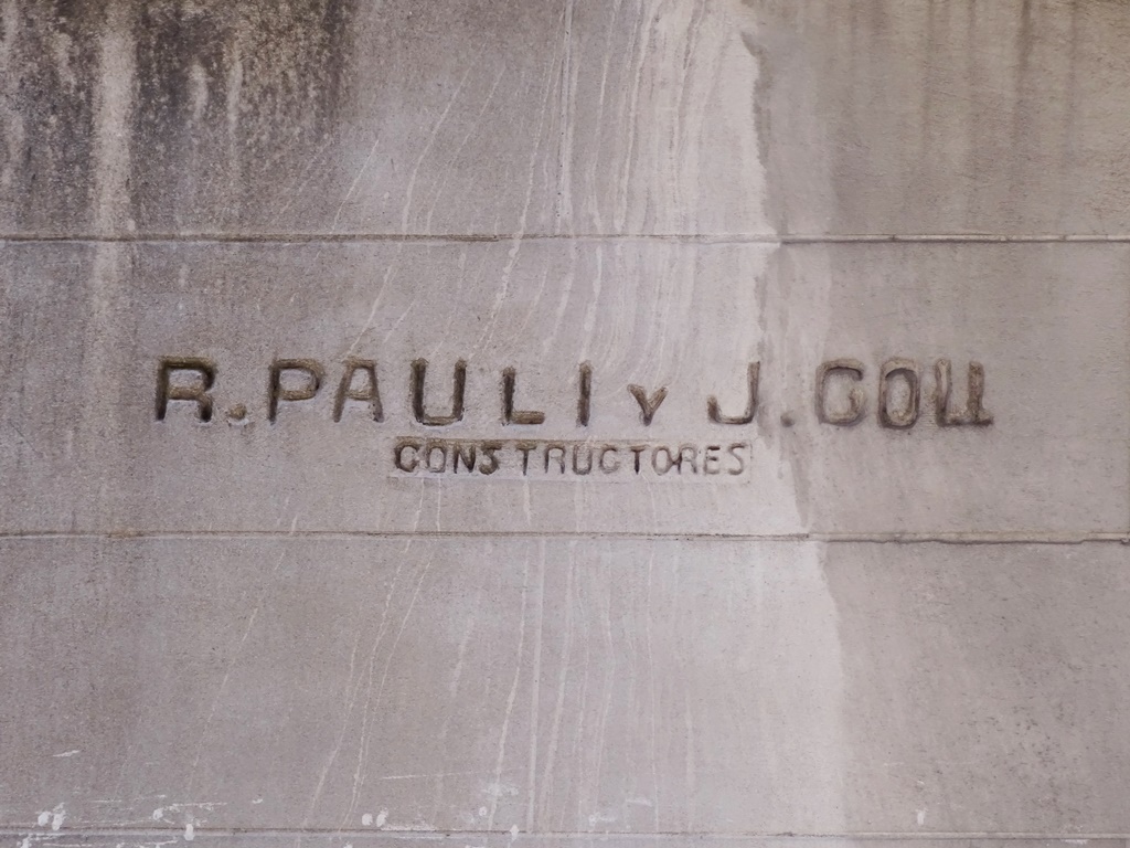 Los nombres de sus constructores, R. Pauli y J. Coll, aparecen grabados en el frente del edificio de Chacabuco 855.
