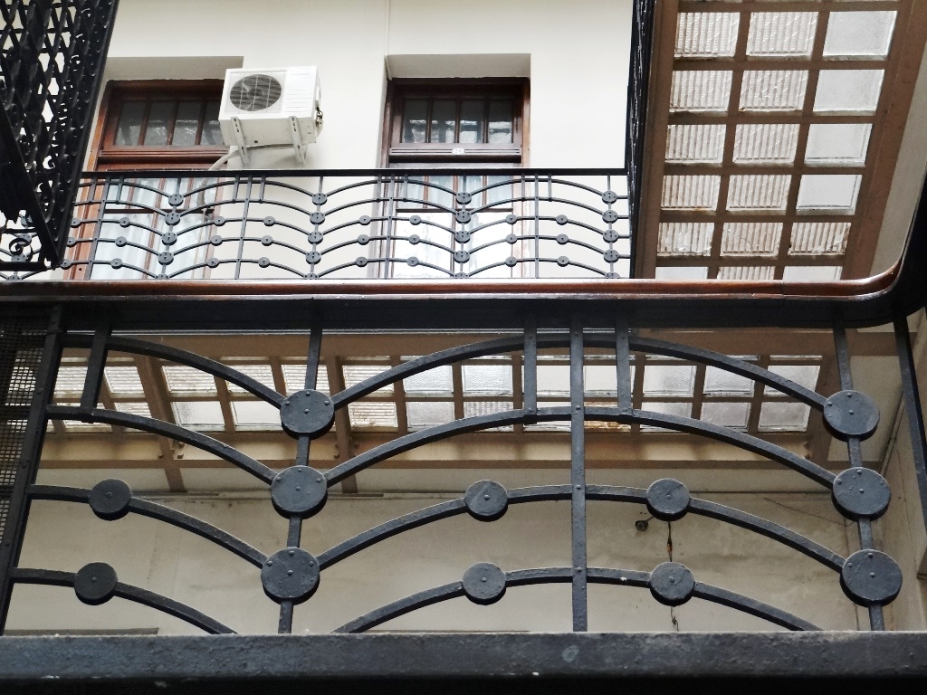 Los elementos decorativos son interesantes: los balcones al frente cuentan con excelentes diseños metálicos de color negro, lo mismo que la puerta de entrada. Las molduras y texturas muestran el habitual cuidado del detalle por parte de García Núñez.
