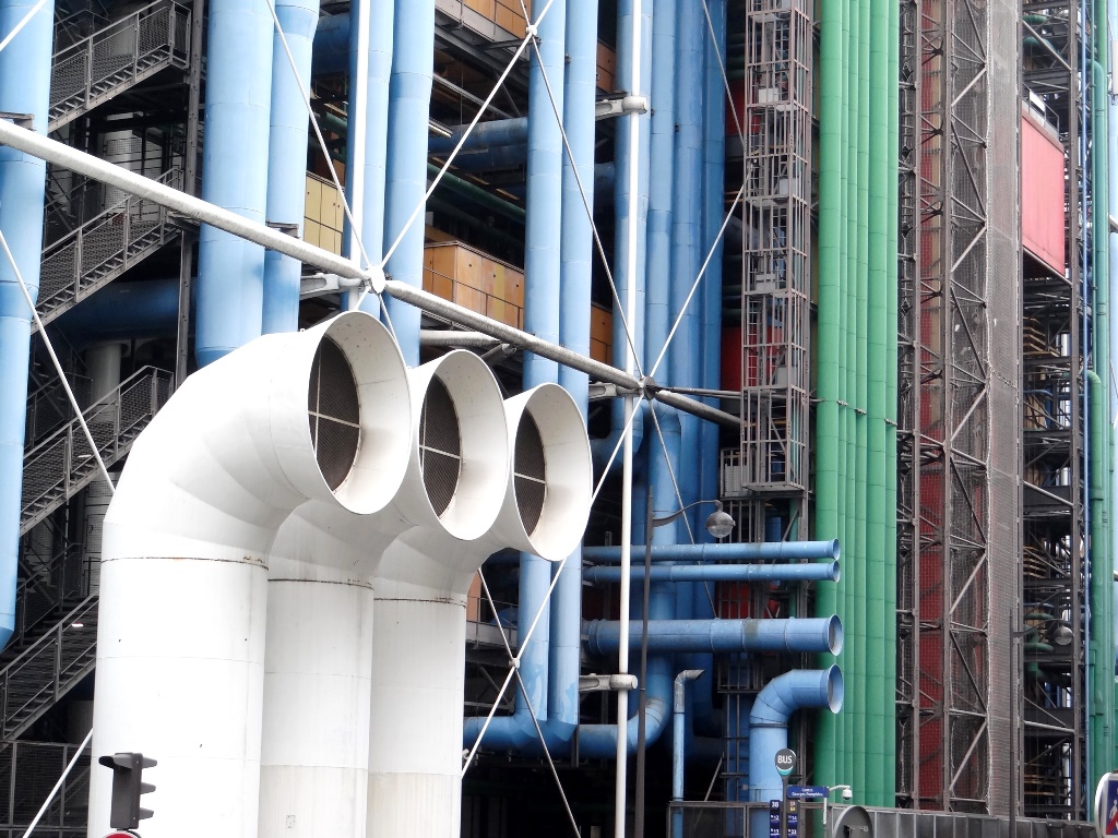 En interesante el código de colores que permite entender la obra desde el exterior: los conductos de aire son de color azul, los de agua, de color verde. Las zonas para circular (ascensores y escaleras) lucen color rojo y los cables eléctricos, amarillo. Este coloso de 40 metros de altura lejos de alterar la fisonomía parisina la embellece.