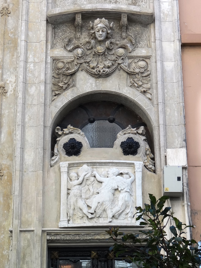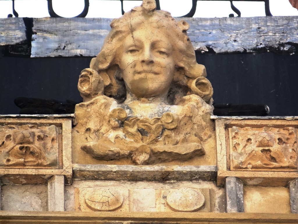 En nuestra opinión, los elementos decorativos, que incluyen guirnaldas, mascarones femeninos, angelitos regordetes, elementos florales y una magnífica balconería en hierro negro, convierten a la fachada en una auténtica una obra de arte, embellecida aún más por el granito rosa de su base.