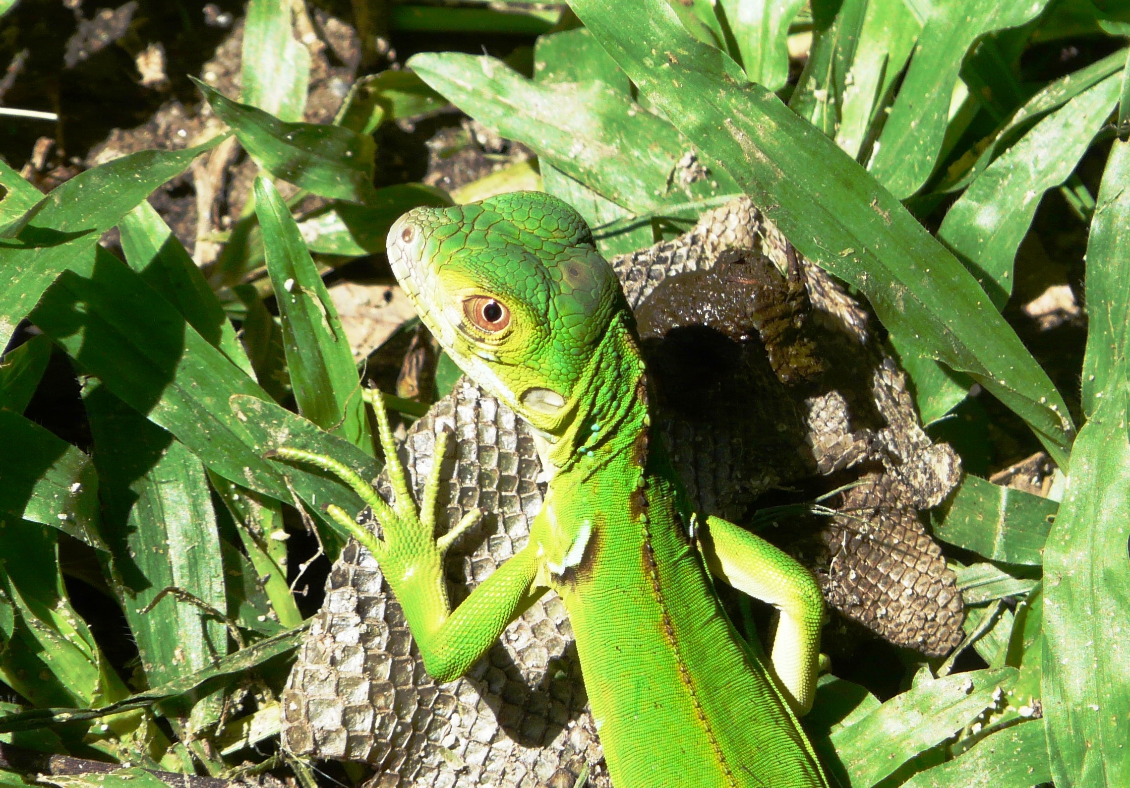 Con frecuencia nos envían fotografías de iguanas o serpientes para que ayudemos a identificar la especie. Esta semana, alguien me envío una imagen de un pequeño reptil intensamente verde y me preguntó si era una iguana verde (nombre científico Iguana iguana) o un garrobo o iguana gris (nombre científico Ctenosaura similis). Quizás Ud. se pregunte cómo alguien puede confundir una iguana verde de una iguana gris si los propios nombres establecen que son de coloración diferente. Ocurre que al nacer y durante su desarrollo temprano ambas son intensamente verdes.