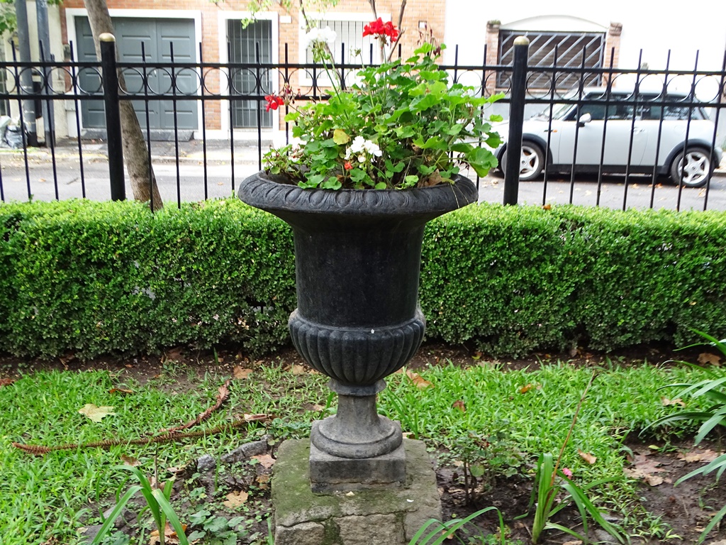 Los jardines cuentan también con grandes canteros en forma de copa y faroles antiguos.