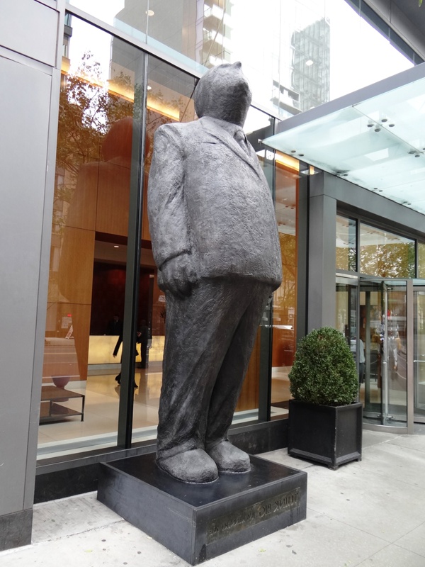 Esta simpática figura en acero inoxidable pulido creada por Tom Friedman se encuentra en la acera de la Quinta Avenida frente al Rockefeller Center. Con una altura de más de 3 metros parece contemplar el edificio principal entre cuyos piso 67 y 70 se encuentra “Top fo the Rock”, el mirador del famoso complejo de edificios que es extiende de las 48 St a la 51 St y de la 5 Ave a la 6 Ave.
