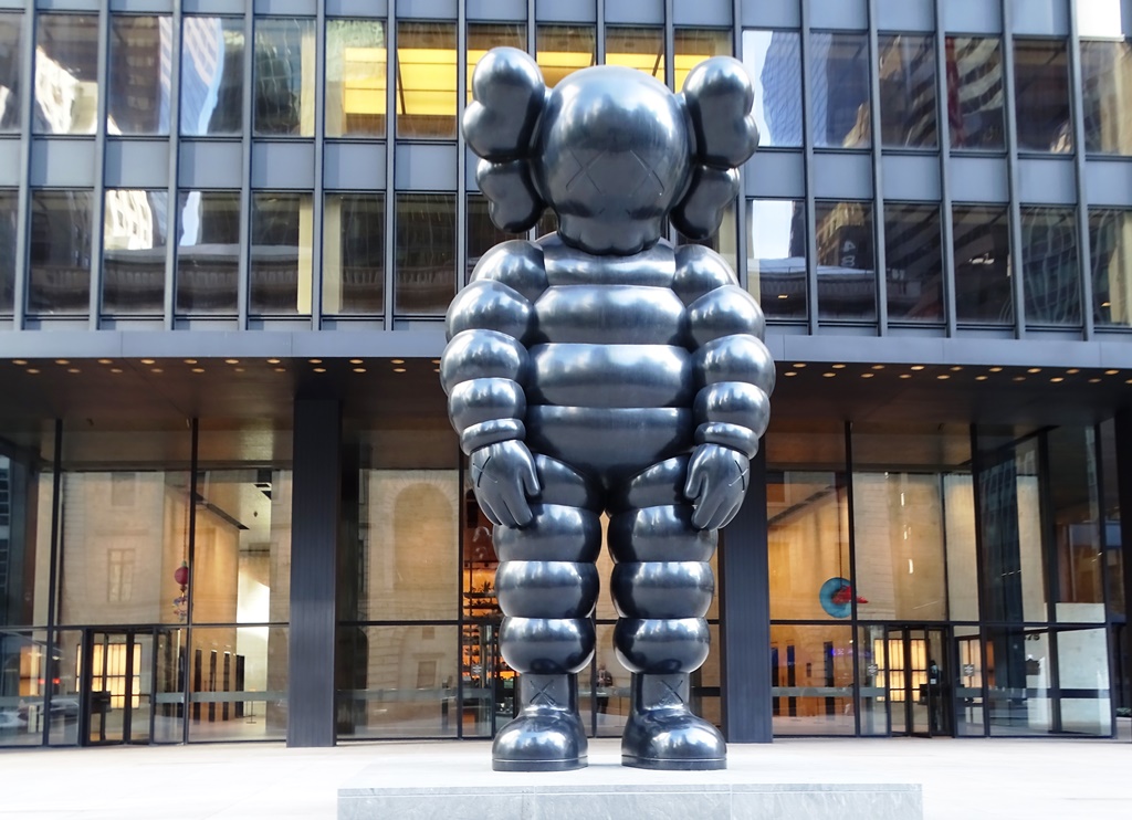 KAWS, seudónimo del artista norteamericano Brian Donnelly, es reconocido por unir arte, cultura pop y juguetes para la venta. Conocido por sus figuras “companion” que recuerdan al famoso muñeco Michelin, ha presentado “What party” con un tamaño monumental.