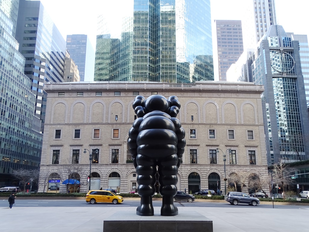 Emplazada en el Edificio Seagram, ubicado en 375 Park Ave, tiene casi 7 metros de altura y está hecha en bronce. De febrero a septiembre de 2021 KAWS expone sus obras en el Brooklyn Museum, pero ninguna es tan grande como esta.