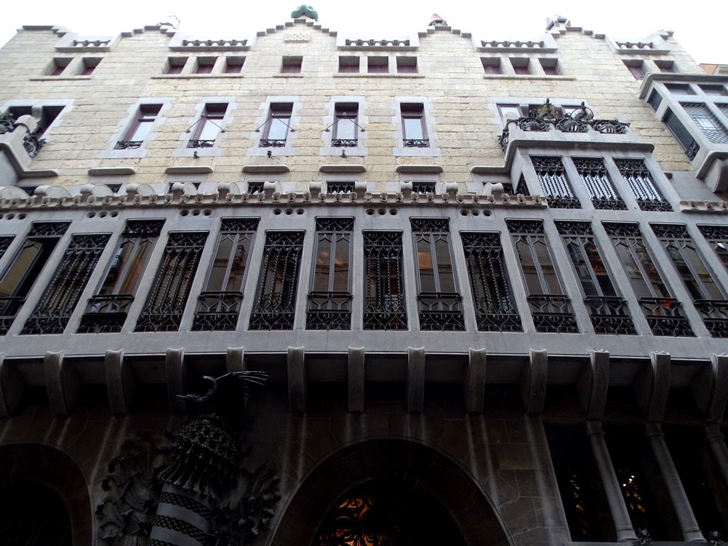 Concebido como vivienda, es un verdadero palacio de grandes dimensiones. Es el único de esta serie que no pudimos visitar por dentro, pero tanto su fachada, las aberturas en ella y particularmente la entrada muestran al maestro Gaudí en todo su esplendor creativo.