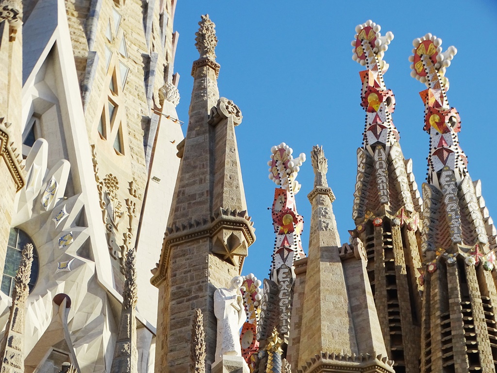 La Sagrada Familia ya terminada contará con 18 torres: 12 dedicadas a los apóstoles, 4 a los autores de los evangelios, una sobre el ábside dedicada a la Virgen María y la torre-cimborio central dedicada a Jesús, que -según hemos leído- alcanzará los 172 metros de altura, convirtiéndose en el edificio religioso más elevado de Europa.