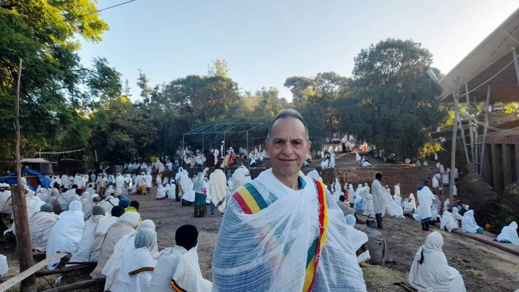 Una mañana tuvimos la oportunidad de asistir un servicio religioso ortodoxo al aire libre en el predio de las iglesias excavadas de Lalibela. No se trataba de una misa, pues no hubo eucaristía. El culto se realizó al aire libre y vimos una fe viva. Nos resultó una experiencia muy rica, pues nos movió a imaginar cómo serían las predicaciones ante multitudes del Señor Jesús.