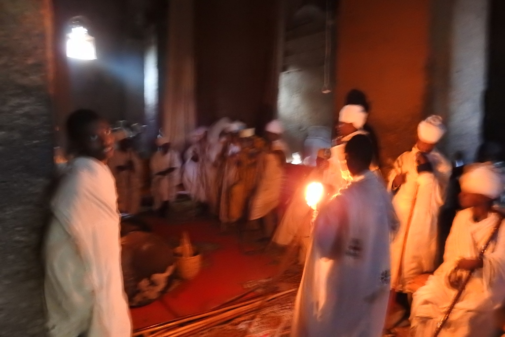 Una mañana tuvimos la oportunidad de asistir un servicio religioso ortodoxo al aire libre en el predio de las iglesias excavadas de Lalibela. No se trataba de una misa, pues no hubo eucaristía. El culto se realizó al aire libre y vimos una fe viva. Nos resultó una experiencia muy rica, pues nos movió a imaginar cómo serían las predicaciones ante multitudes del Señor Jesús.