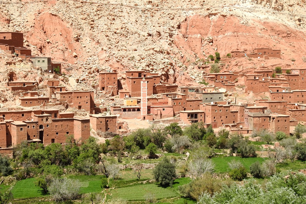 El descenso nos introduce en otro territorio, rojizo y desértico. Desfilan ante nuestros ojos pequeñas aldeas y kasbahs[2] abandonadas.