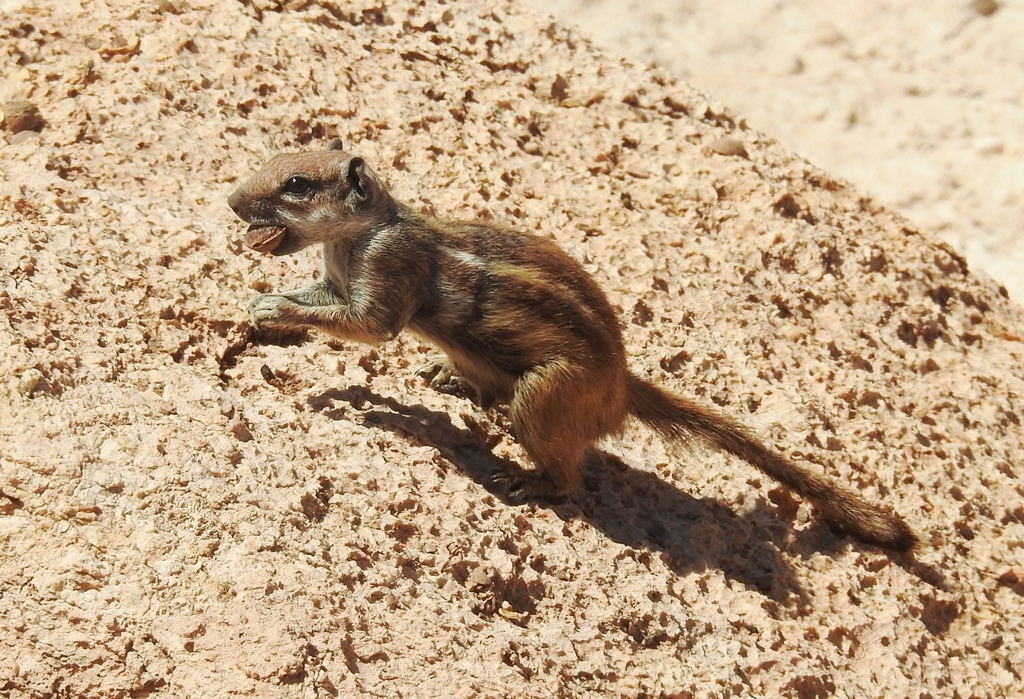 Algunas ardillas salvajes cruzan la carretera mientras se hace notoria la escasez de árboles.