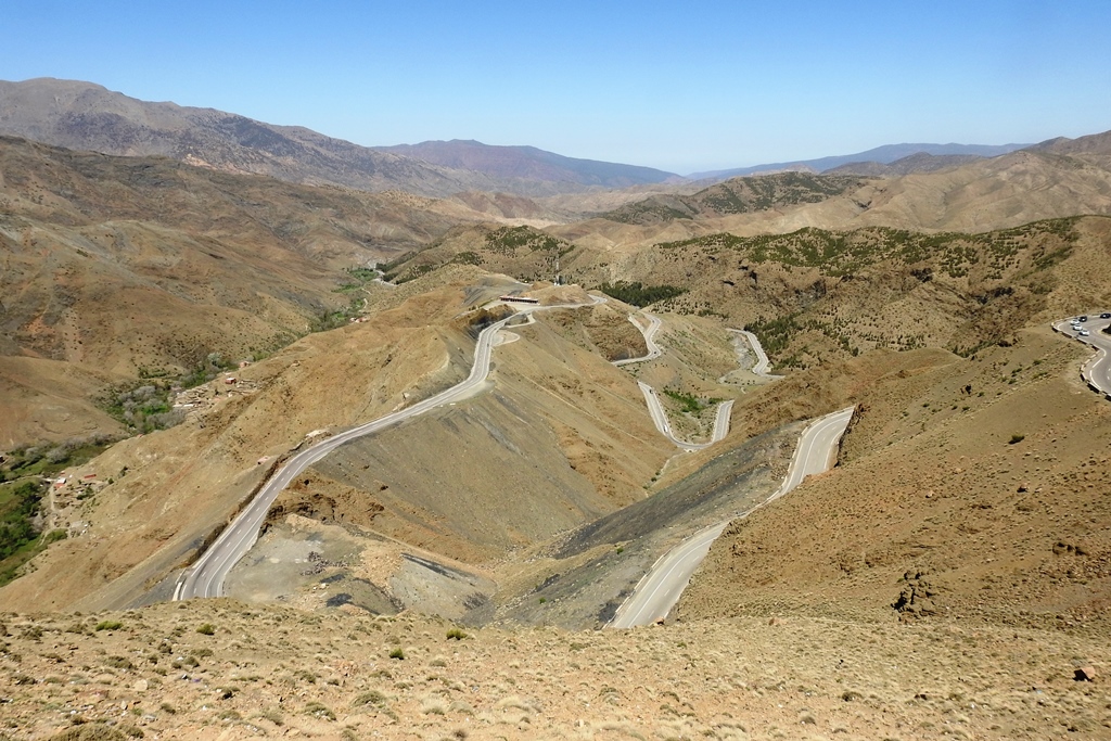 Llegamos al fin a Tizi n’Tichka, el paso de carreteras más alto del norte de África. Es un cruce a 2260 metros sobre la cordillera de los Altos Atlas. Nos sumamos a cientos de viajeros que se han detenido para admirar el panorama y comprar alguna artesanía.