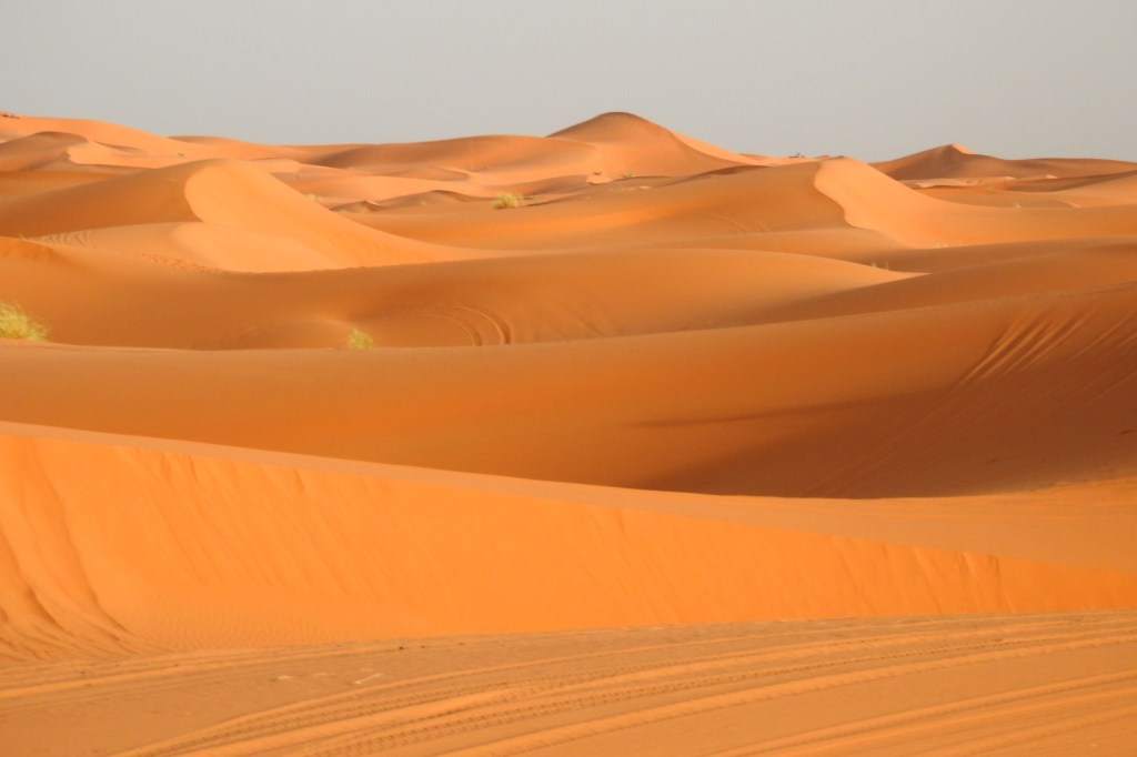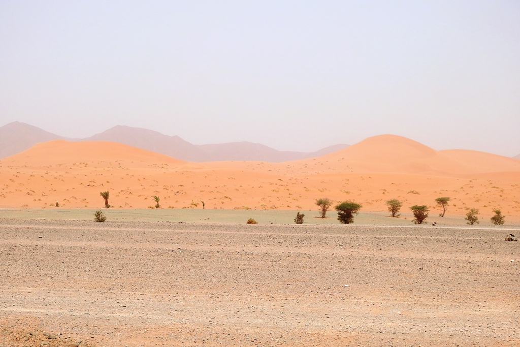 Ahora sí, sin más dilaciones, nos dirigimos a nuestro principal destino. Durante el recorrido observamos camellos salvajes; el relieve se aplana y el sol se hace más intenso. Tras varias horas, arribamos al desierto de Erg Chebbe.