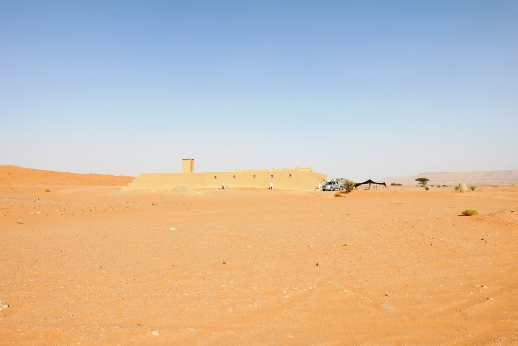 Llegamos al fin al lugar al riad[6] Ouzina TGM, el sitio donde pernoctaremos. Tiene el mismo color de la arena y parece ser parte del desierto. Casi invisible, se alza delicadamente en ese entorno inhóspito. Hemos pasado horas sin ver a otros humanos, salvo a unos pocos en sus coches.