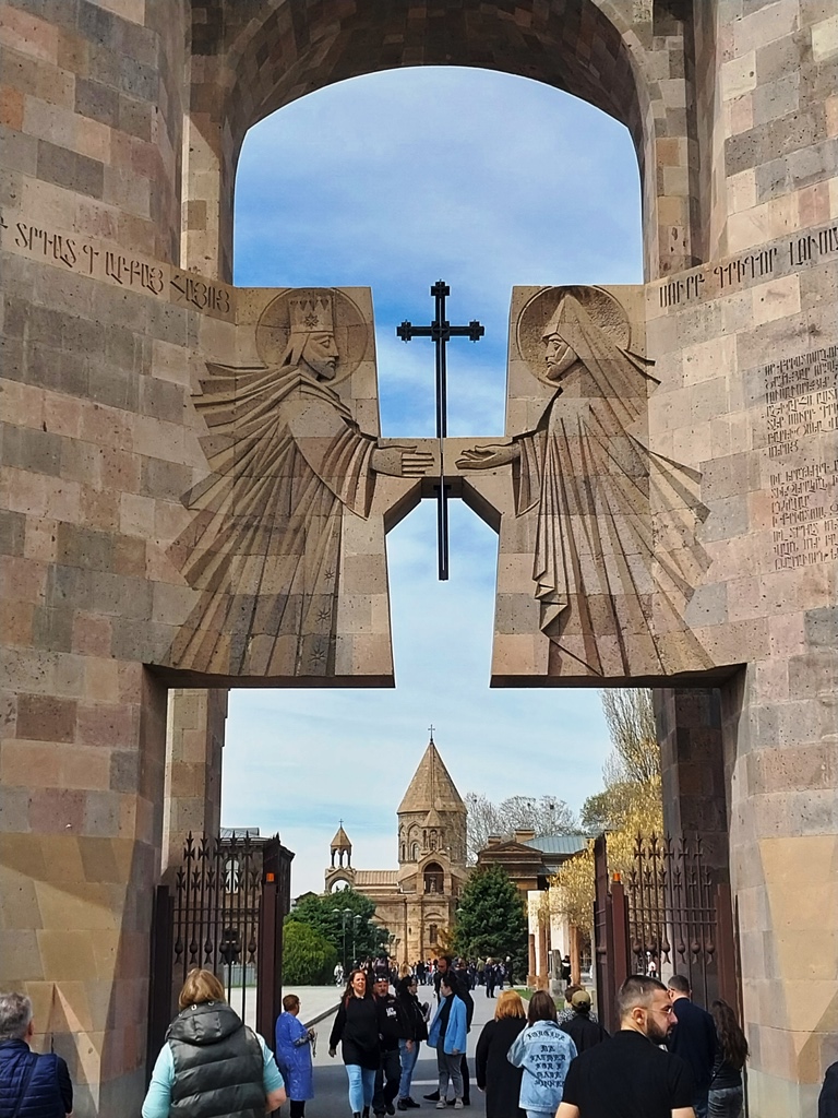 Cruzando un gran arco de piedra se ingresa a la Santa Sede de Echmiadzin, un extenso parque con bellos jardines que es una suerte de Vaticano armenio.