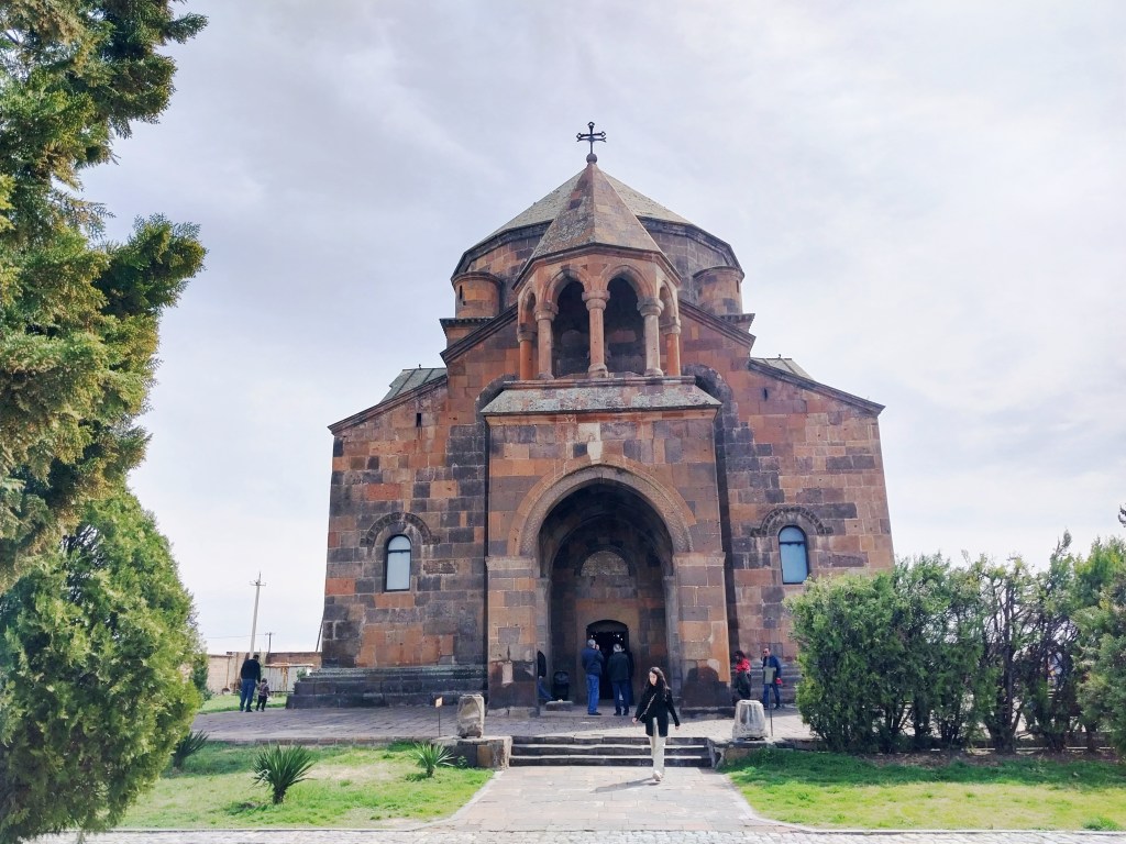 Completado en el año 618, este magnífico templo está erigido en Echmiadzin, ciudad a unos 20 km de Yerevan, donde también se encuentra la sede del patriarca o catolicós de la Iglesia Apostólica Armenia. La iglesia de Santa Hripsime ha servido de modelo a muchas iglesias armenias, no solo en el país, sino alrededor del mundo, imponiendo la típica cúpula puntiaguda poligonal que se observa desde el exterior del edificio.
