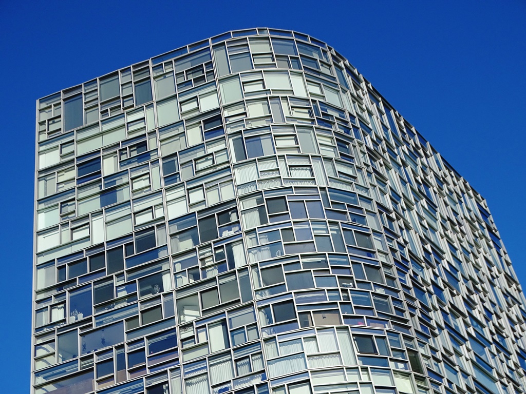 A fin de brindar un sólido soporte estructural a esta angosta torre de 320 metros de altura, la fachada ha sido ubicada dentro de una cuadrícula de hormigón. El exterior cuenta con 5747 paneles de triple acristalamiento fabricados en Alemania y marcos de aluminio. Parte de la fachada de los pisos inferiores son de mampostería.