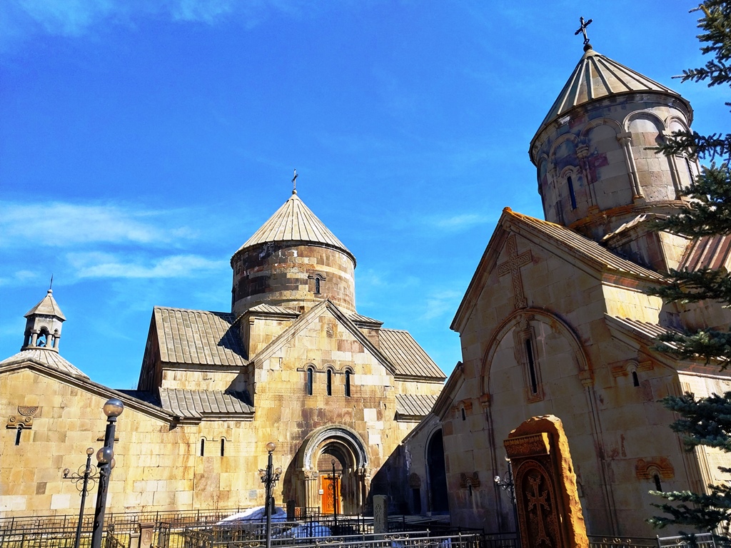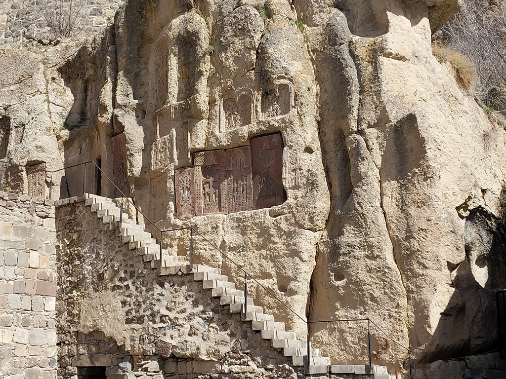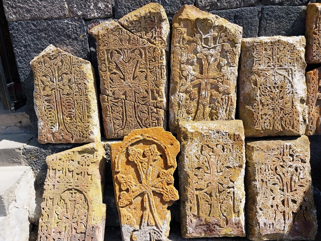 También pueden admirarse las omnipresentes jachkars (típicas cruces armenias de piedra de diseño filigranado, correspondientes a diversas épocas.