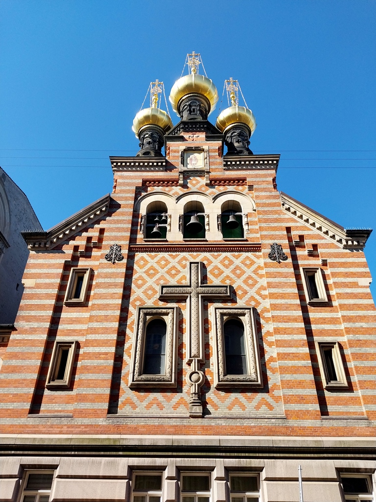 A pocos pasos se encuentra también la bella Iglesia Ortodoxa dedicada a san Alexander Nevsky, con un frente de ladrillo rojos y grises y sus tres cúpulas doradas acebolladas. Fue construida por el gobierno ruso entre 1881 y 1883.