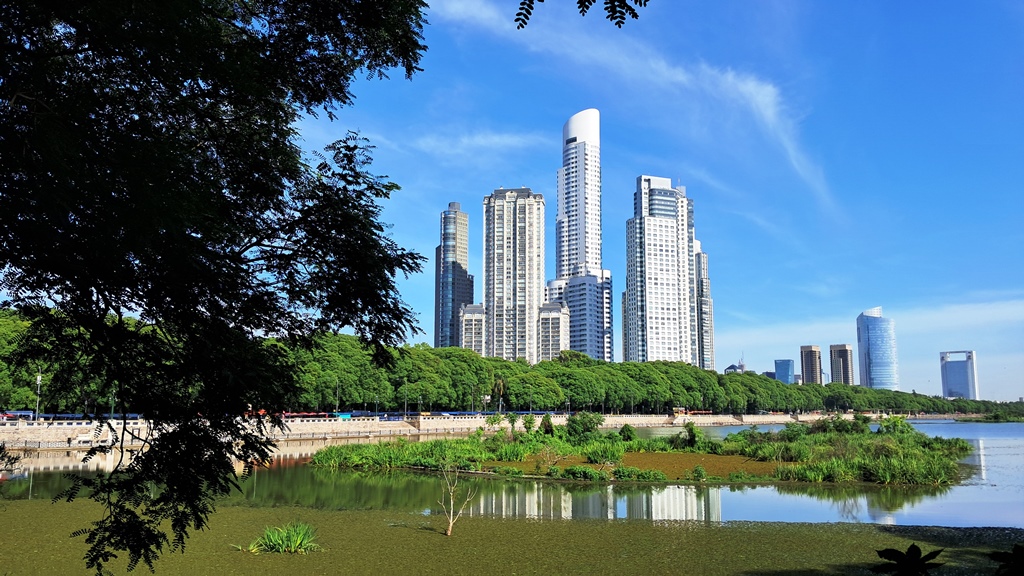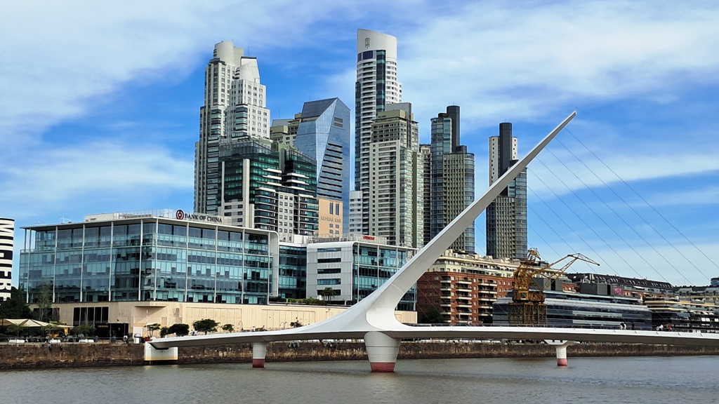 Puerto Madero es una de las zonas más bellas de Buenos Aires. Emplazada en lo que había sido una zona de docks inaugurada en 1897, pero abandonada pocos años después, fue recuperada a partir de 1993 y convertida en un barrio de imponentes edificios, tiendas de lujo y centros culturales, con amplios espacios verdes. Sus pintorescos depósitos reciclados de ladrillo rojo, el canal del río por delante y las viejas grúas amarillas a sus lados contrastan con el Puente de la Mujer de Santiago Calatrava, las modernas oficinas de vidrio y acero y las torres de impronta futurista.