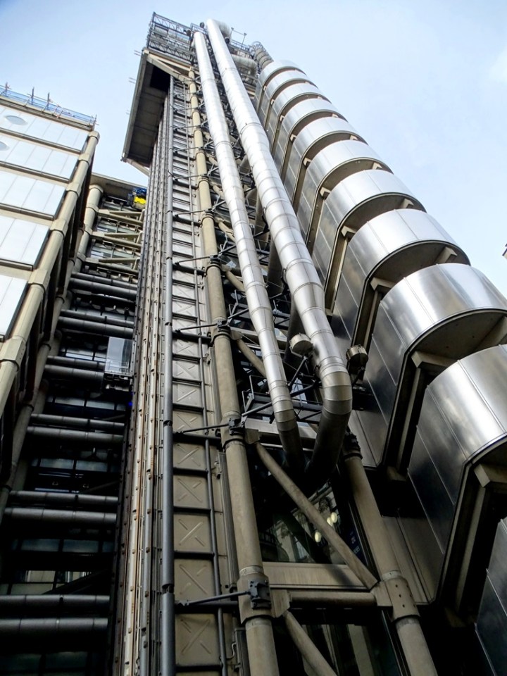 Muy cerca de The Gherkin se encuentra otro asombroso edificio, el Lloyd’s Building, diseñado por el prestigioso arquitecto Richard Rogers y sus asociados. Se lo conoce como El edificio del revés porque deja al desnudo todas sus estructuras, como si uno hubiera dado vuelta una ropa y viera todas sus costuras.