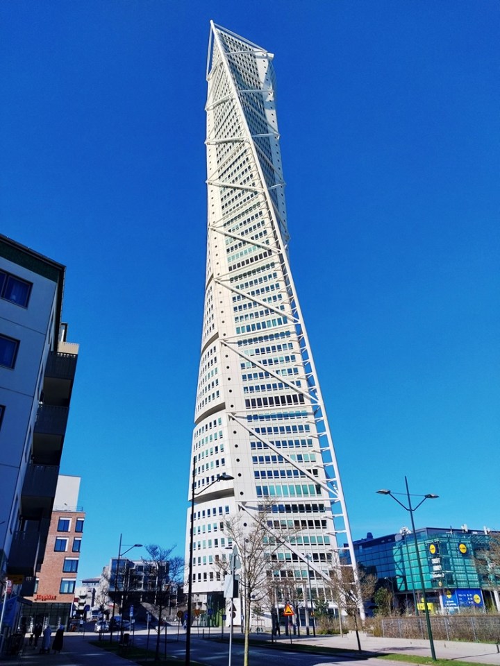 Ya hemos escrito sobre el Oculus de New York y otras obras de Santiago Calatrava[1]. Aún tenemos pendiente escribir sobre su Ciudad de las Ciencias y las Artes de Valencia. Sin embargo, visitamos Malmö con el único propósito de admirar y fotografiar este extraordinario rascacielos neofuturista del gran arquitecto español.