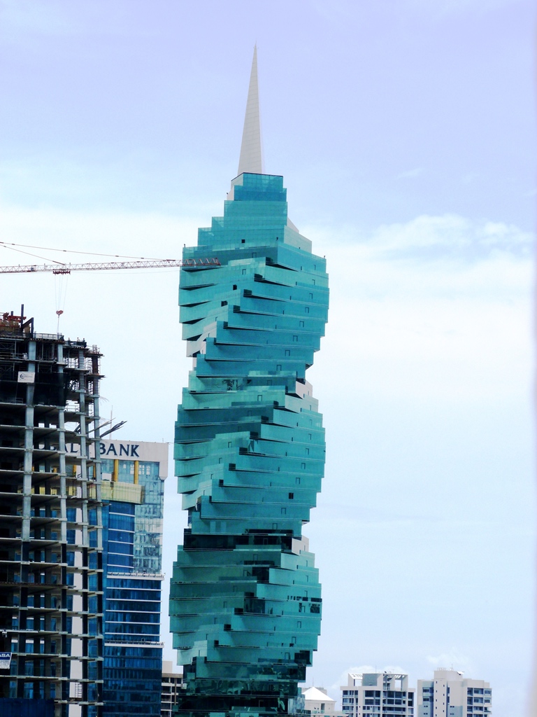 No solo el casco antiguo de la ciudad de Panamá es un imán que atrae a los turistas, sino también su gran diversidad de rascacielos ubicados en Punta Pacífica, Punta Paitilla, San Francisco y sobre la avenida Balboa. Entre ellos se destaca la F&F Tower, a la que la imaginación popular le asignó un nombre que no le hace honor: El Tornillo. Aunque no hemos podido lograr una fotografía que lo exhiba en toda su belleza, nuestra imagen sirve para intuirla.
