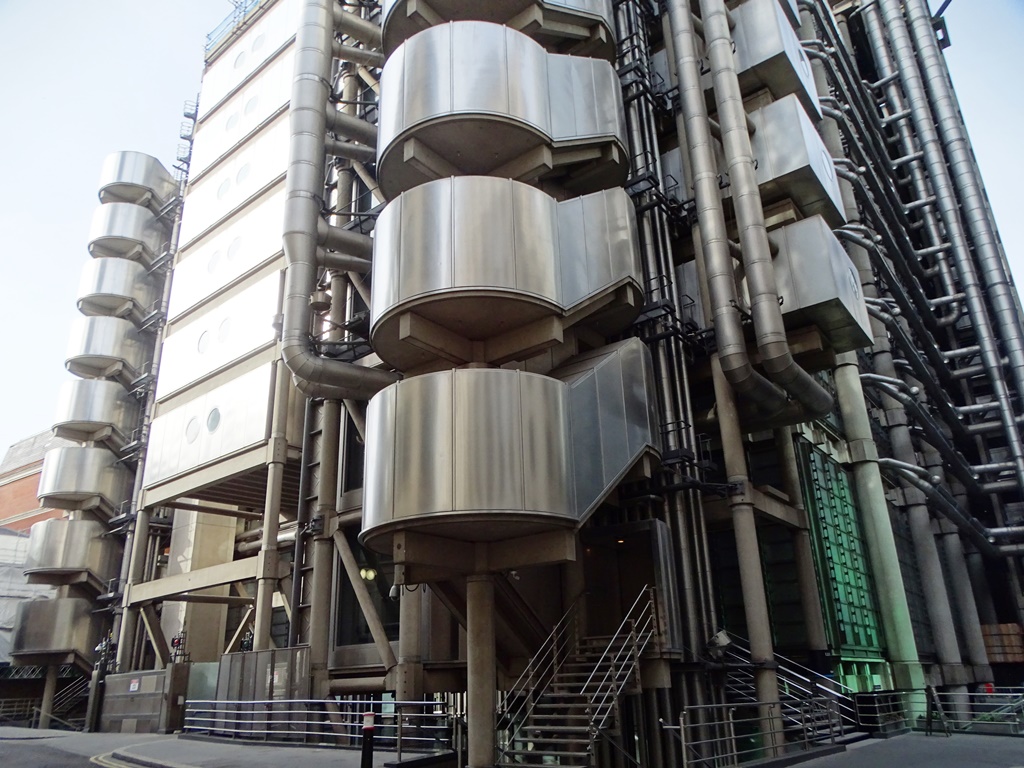 Muy cerca de The Gherkin se encuentra otro asombroso edificio, el Lloyd’s Building, diseñado por el prestigioso arquitecto Richard Rogers y sus asociados. Se lo conoce como El edificio del revés porque deja al desnudo todas sus estructuras, como si uno hubiera dado vuelta una ropa y viera todas sus costuras.