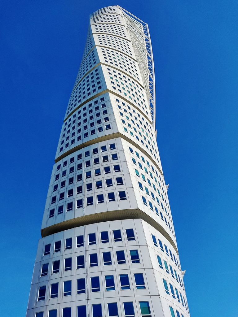 Ya hemos escrito sobre el Oculus de New York y otras obras de Santiago Calatrava[1]. Aún tenemos pendiente escribir sobre su Ciudad de las Ciencias y las Artes de Valencia. Sin embargo, visitamos Malmö con el único propósito de admirar y fotografiar este extraordinario rascacielos neofuturista del gran arquitecto español.